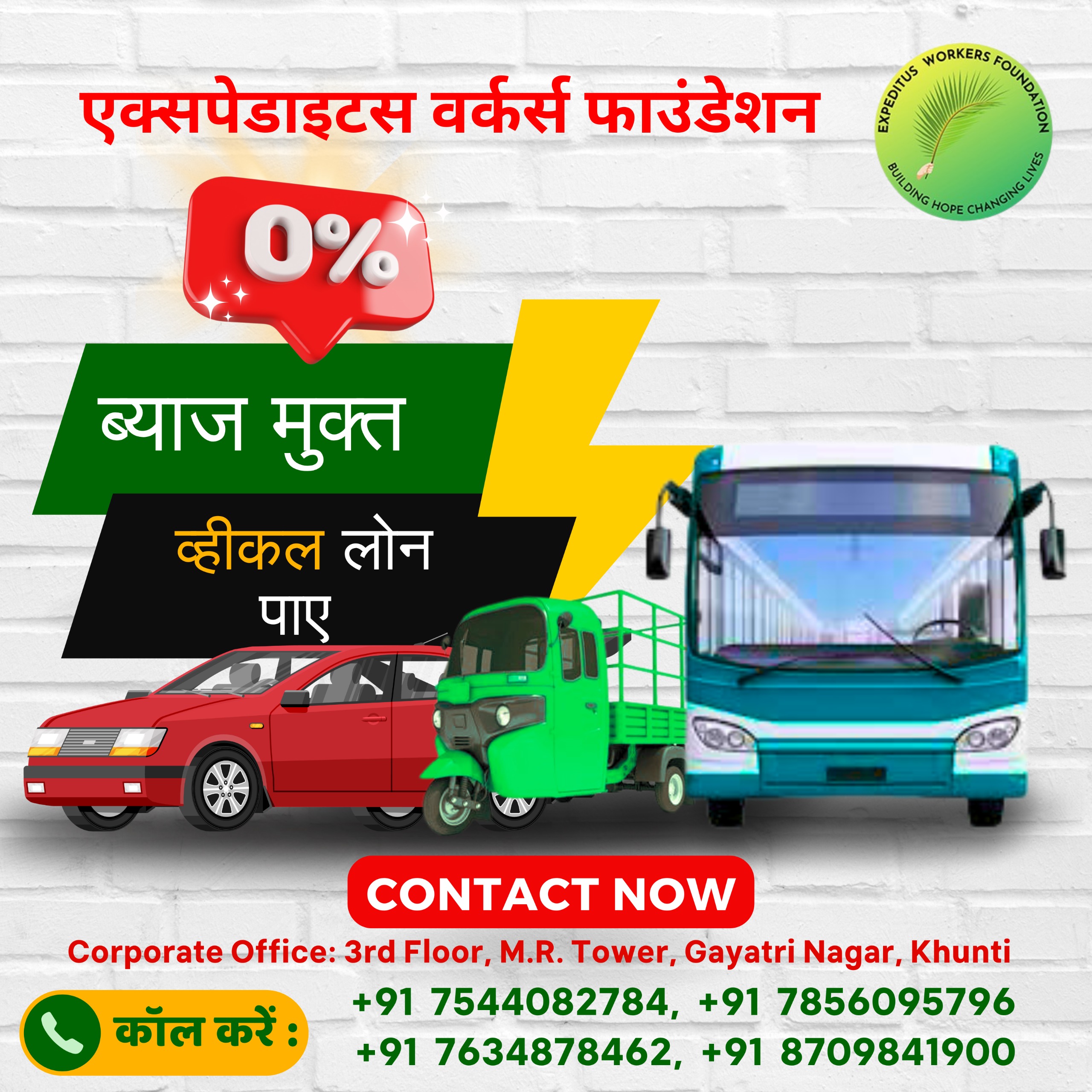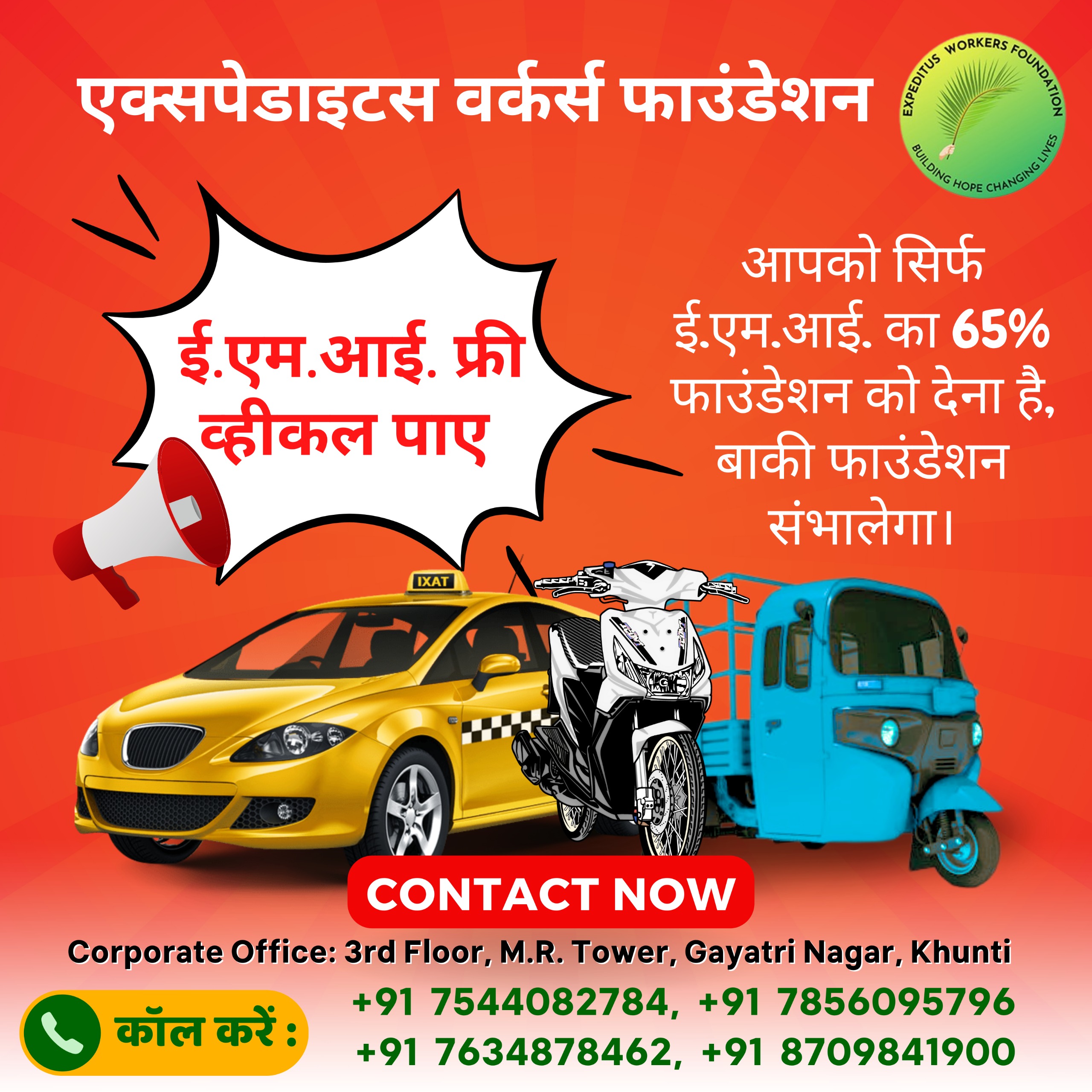 Under the EMI-Free scheme, the client is required to pay 65% of the vehicle’s cost to our foundation. In return, the foundation will cover the monthly EMI for the vehicle loan, depositing the support fund into the beneficiary’s account until the loan is repaid.