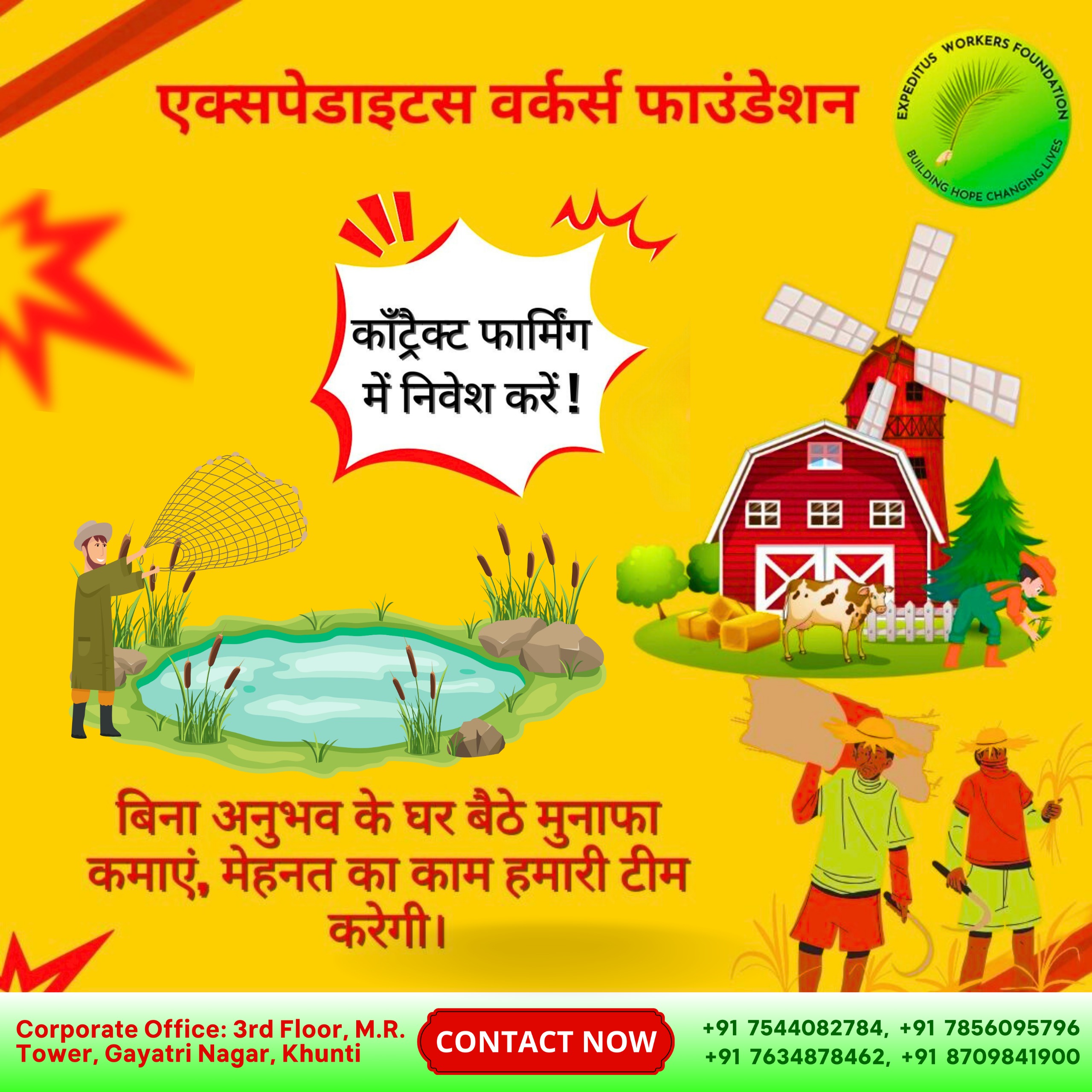 We bring you an opportunity that does not require any special educational qualification, previous experience or job. A person of any age, be it boy or girl, can be a part of this scheme. By investing in live stock based contract farming (fish farming, goat rearing, duck rearing etc.) you can earn good profits sitting at home without any stress. Our team will do the hard work. It is a steady and profitable source of income, which will help you step towards a secure future.